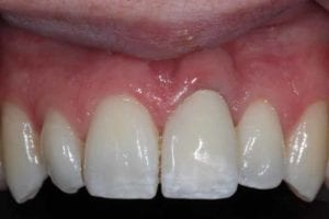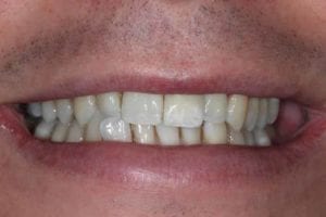 The ‘After’ photos shows the final crown that was made after 3 months. The implant crown was made to match the form and colour of the exisiting teeth to give an overall natural aesthetic finish.