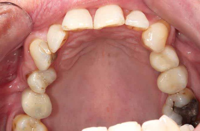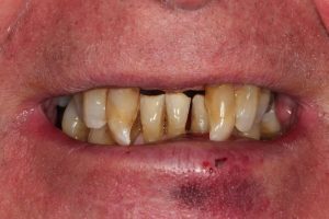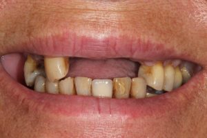 This patient had missing teeth and the those that remained were failing. After discussing with the patient, it was decided to remove the failing teeth and rehabilitate with same day all on 4 dental implants.