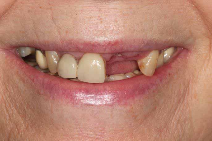 Both upper central incisors were lost and replaced with dental implants to restore the natural appearance of the smile.