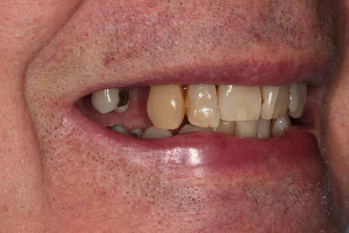 The failing upper left central incisor was removed and subsequently replaced with a dental implant.