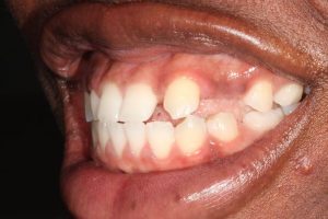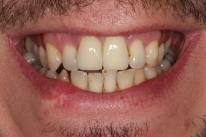 This patient was born with missing teeth and as a result the teeth that were present moved into these spaces. We started with orthodontic treatment (braces – undertaken by Dr Zaid Esmail) to move the teeth into the correct position and create the space needed for the dental implants. The implants were then placed towards the end of the braces treatment and the crowns fitted once the teeth were fully aligned.